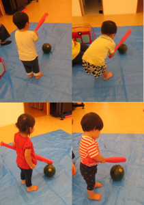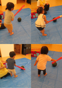 上手に両手でバットを持って、スイカに当てる事ができていました😁